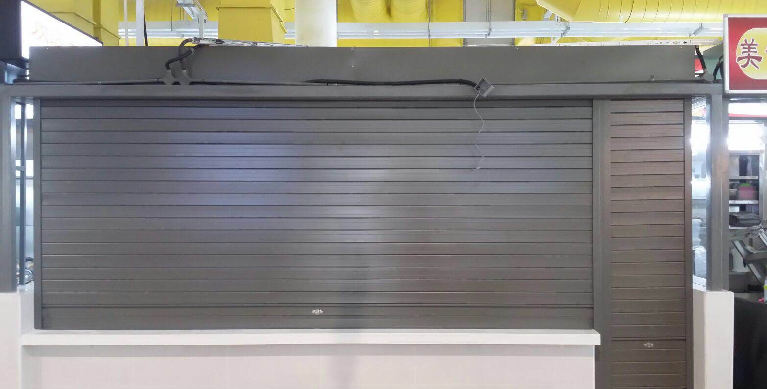 Call: +65 6392 5434Brand New Powder Coated Aluminium Roller Shutters Installed for Hawker Centre